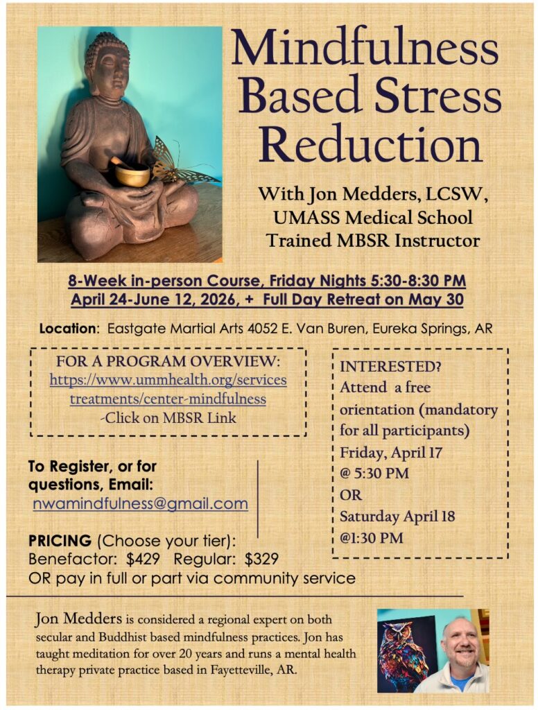 Many regular and special events take place throughout the year– now on zoom, but normally at Buddhist practitioners’ homes and at local retreat centers in this area. Information about them can be difficult to access. Buddhark aims to make all of these groups and events easily accessible from a single location, thereby creating a stronger community of shared spiritual interests here in Northwest Arkansas. We invite you to share up-to-date information about your own Buddhist organization with us.